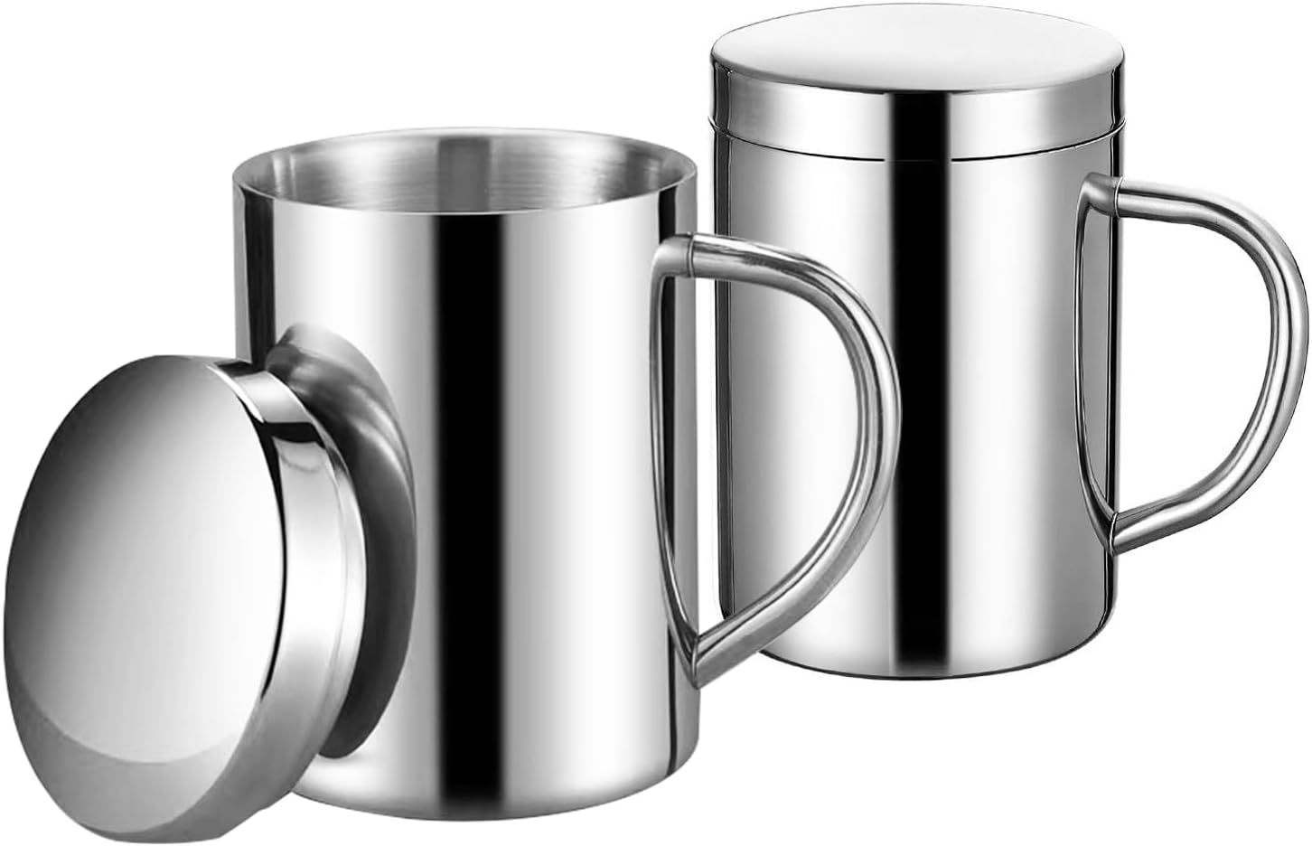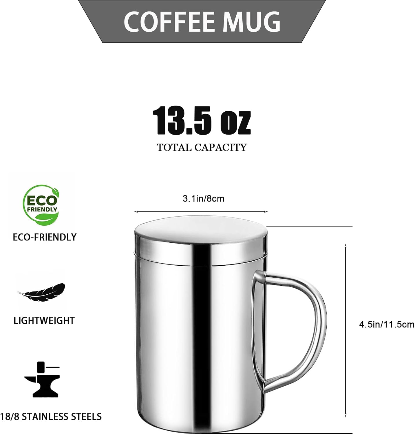 13.5 oz Stainless Steel Double-Walled Metal Mugs – Insulated Coffee & Tea Cup with Lid and Handle for Camping and Everyday Use (2 piece)